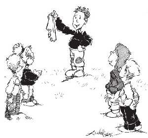 Y lo demás jugadores tienen que obedecer. Dará entonces tres pasos e intentará dar con la pelota a los otros que podrán mover el cuerpo, pero no los pies. Los que van perdiendo se van apuntando tantos en contra: